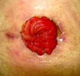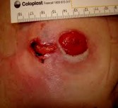 Intervenţii: îngrijiri locale cu apareiaj adaptat, reconstrucţie chirurgicală, evacuarea abcesului, protezarea largă care include stoma şi drenajul abcesului, utilizarea de saci colectori cu fereastră de vizitare în vederea pansării.