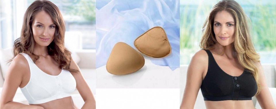 Sutien special, cu inchidere in fata, adaptat pentru folosirea protezelor externe de san, cu buzunare pe ambele parti.